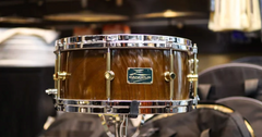 The Zelkova Snare Drum, which has a hollowed one piece drum shell, can be described as the purest form of the drum. Only one hollowed piece can be taken from a stump of precious 200 year old Zelkova wood, also called Akagi or “red wood.” The sound that is produced from a single piece of wood has a unique and powerful attack. Each stroke produces a “block of sound” with a sharp edge and a thick low pitch, while maintaining the warmth of natural wood. The special nature of Zelkova is highly revered and sought after by top drummers around the world.