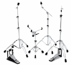 The PDP 800 Series Hardware Pack includes five pieces of medium-weight, pro-inspired hardware, all in one box! designed by DW in California, these stands include features such as a variable-position Glide Tilter' with QR quick-release wing nut, lightweight composite memory locks on all of the tube joints, and oversized anti-slip rubber feet. Also included in this pack is the PDSP810 single pedal that's both stylish and responsive. The dual post design is outfitted with a double-chain, concentric drive system, smooth cast footboard with integrated needle bearing hinge, and offset toe clamp. *
